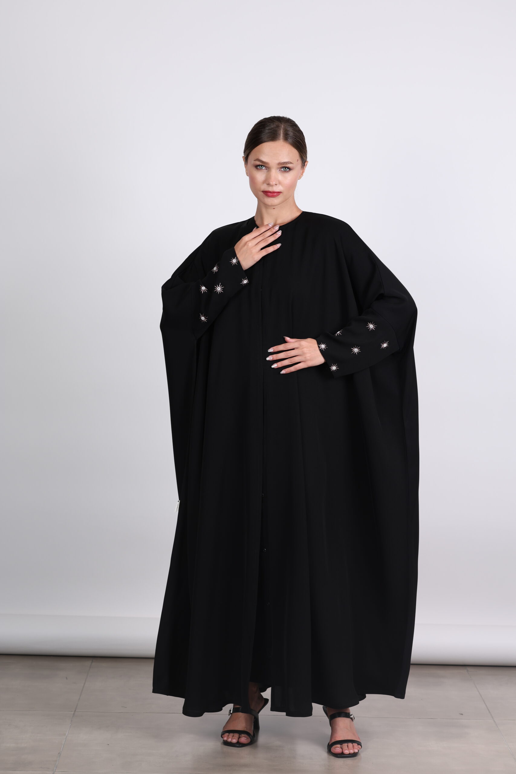 عبايهبقصهجاينزواسعهبخامالكريبالكوريالاصليعليالاكمام تطريز وشك يدوي ملاحظهممكنتغيرقصهالعبايهاليالقصهالكلوشالحفر (ملاحظه الكم من عند المعصم نهايه اليد قبل الكف نظامه يكون ضيق لو في مقاسات معينه الرجاء ذكرها بالملاحظات