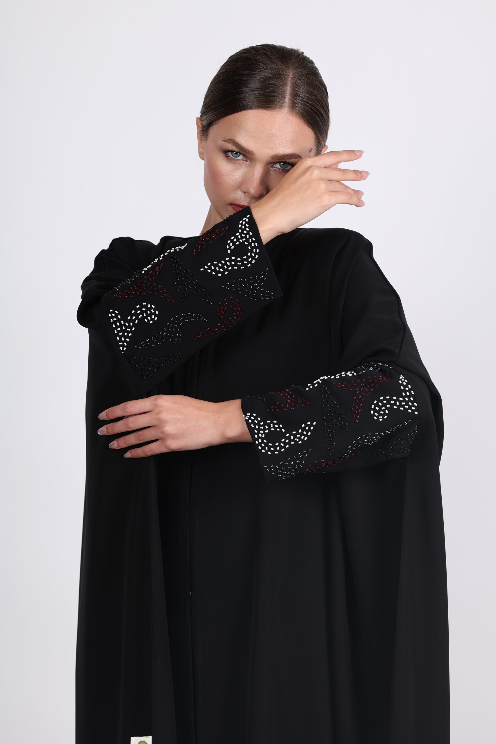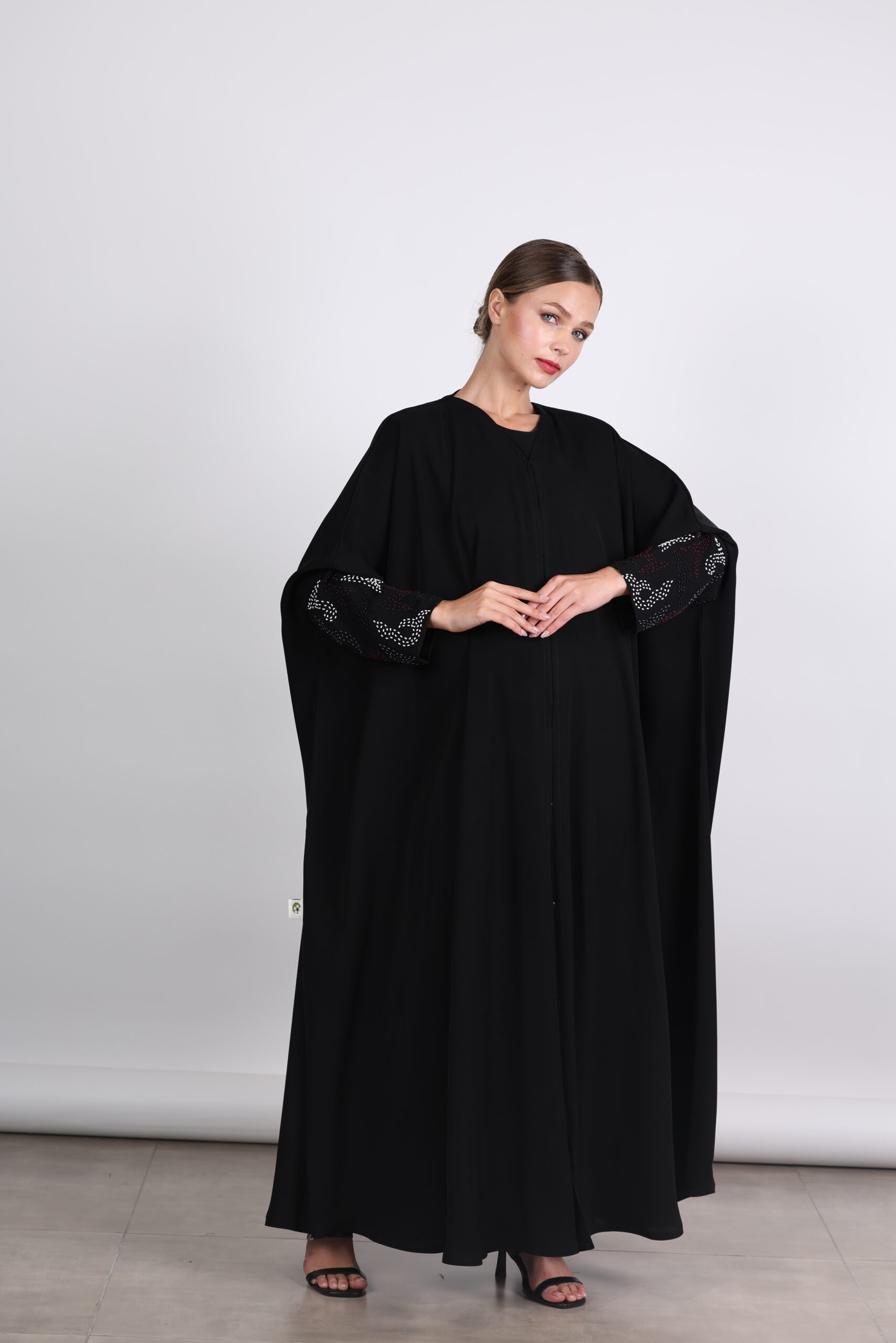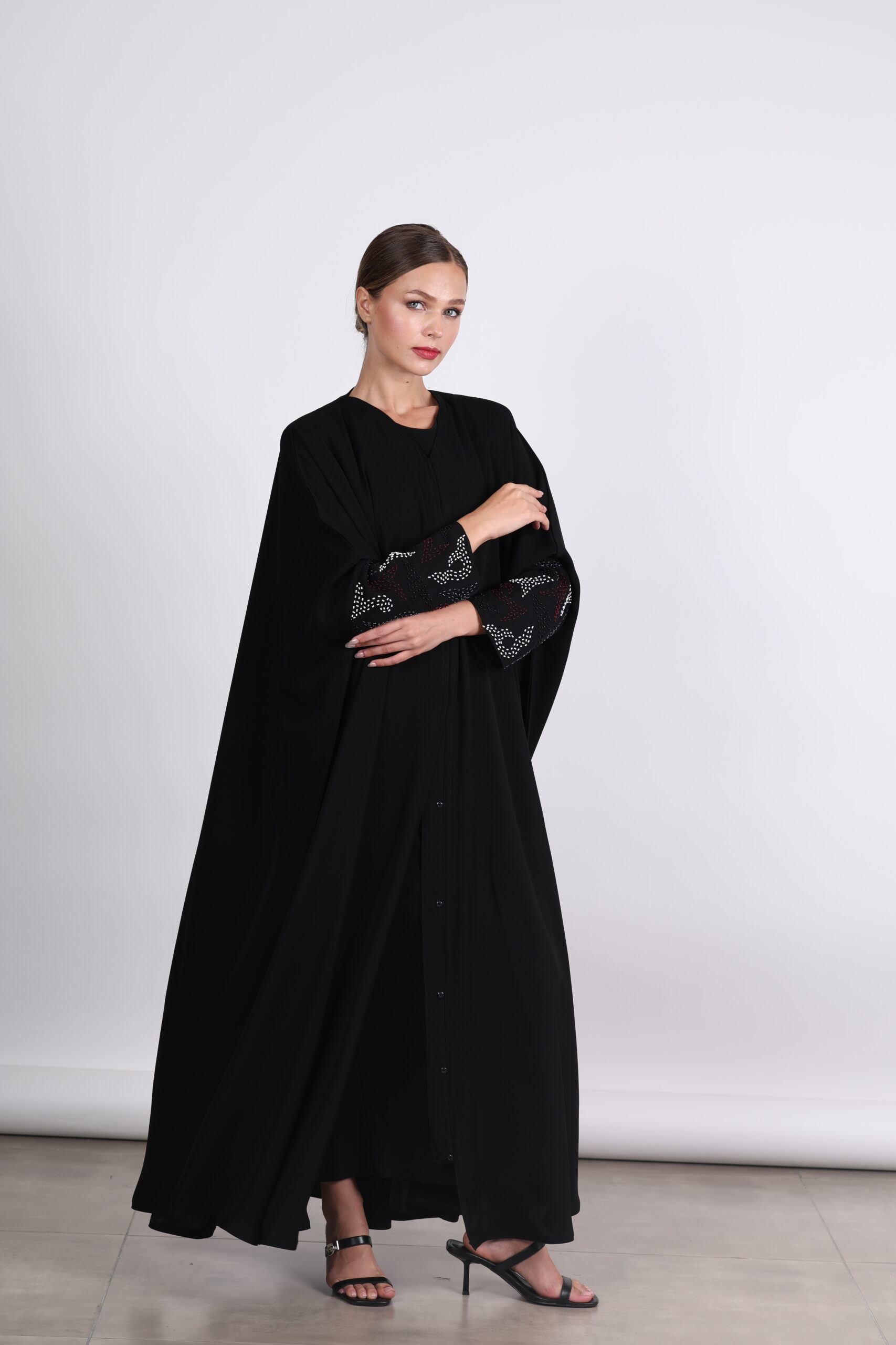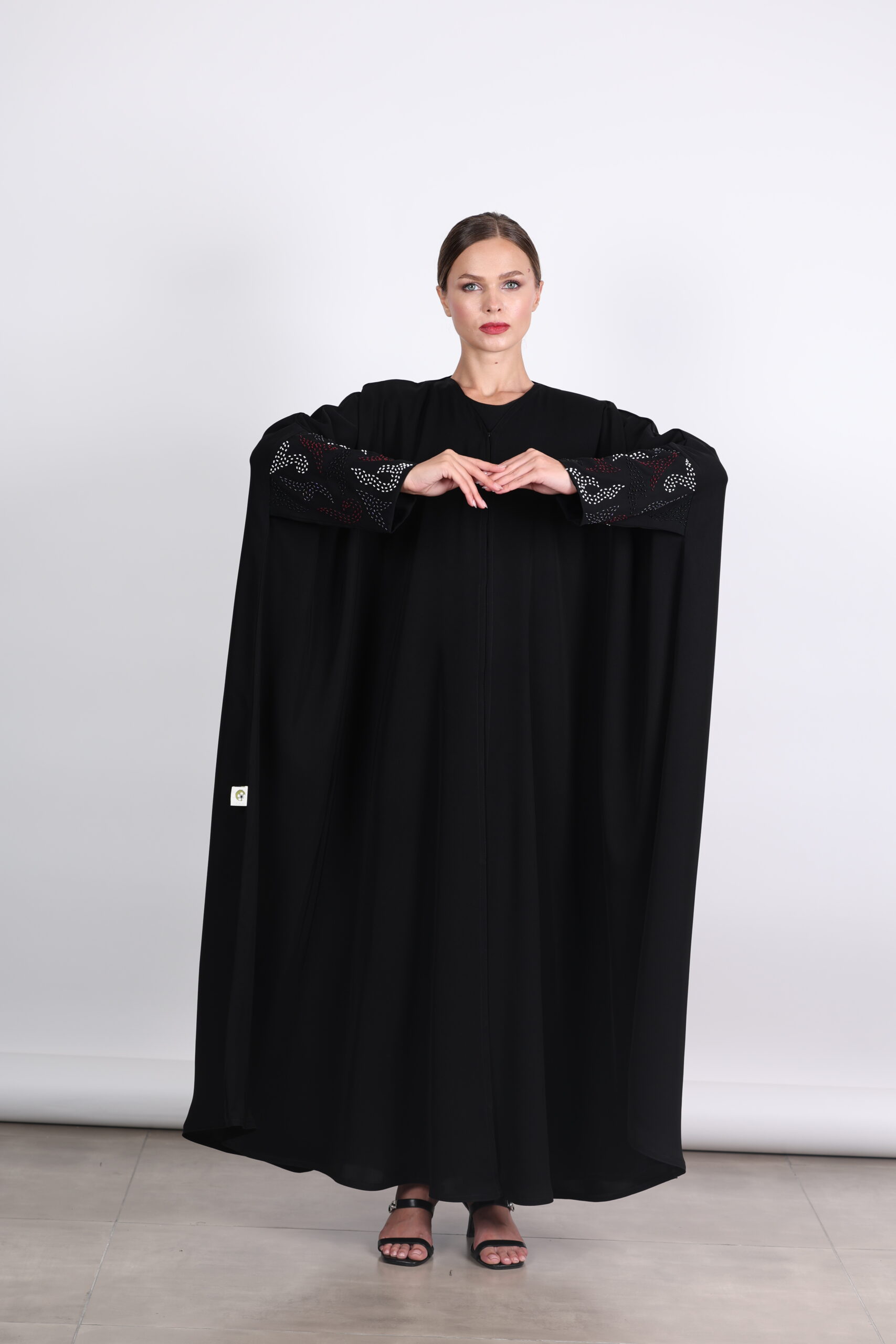 عبايه بقصه جاينز واسعه بخام الكريب الكوري الاصلي علي الاكمام شك يدوي  ملاحظه ممكن تغير قصه العبايه الي القصه الكلوش الحفر (ملاحظه الكم من عند المعصم نهايه اليد قبل الكف نظامه يكون ضيق لو في مقاسات معينه الرجاء ذكرها بالملاحظات